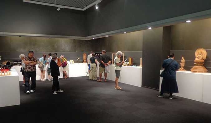 京仏壇・京仏具製作の分業工程のうち木地・木彫・漆工・仏像彫刻・蒔絵・截金・箔押・錺金具・金属の各工程から力作計35点が出品され、340名の方々に熱心に鑑賞頂きました。